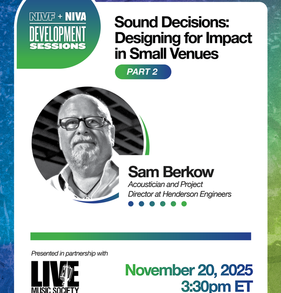 Join acoustician and project director Sam Berkow as he takes us deeper into practical strategies for improving sound in small and mid-sized venues. From budget-friendly fixes to long-term infrastructure planning, this session will offer valuable insights for venue operators, production teams, nonprofit leaders, and anyone passionate about creating intentional sound design that benefits artists, audiences, and communities.
